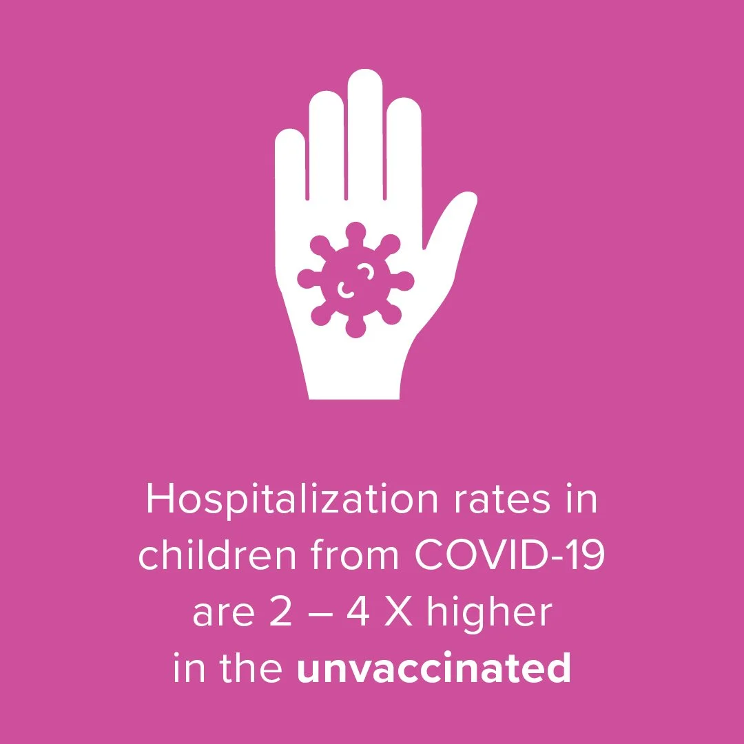 Hospitalization rates in children from COVID-19 are 2-4X higher in the unvaccinated.
