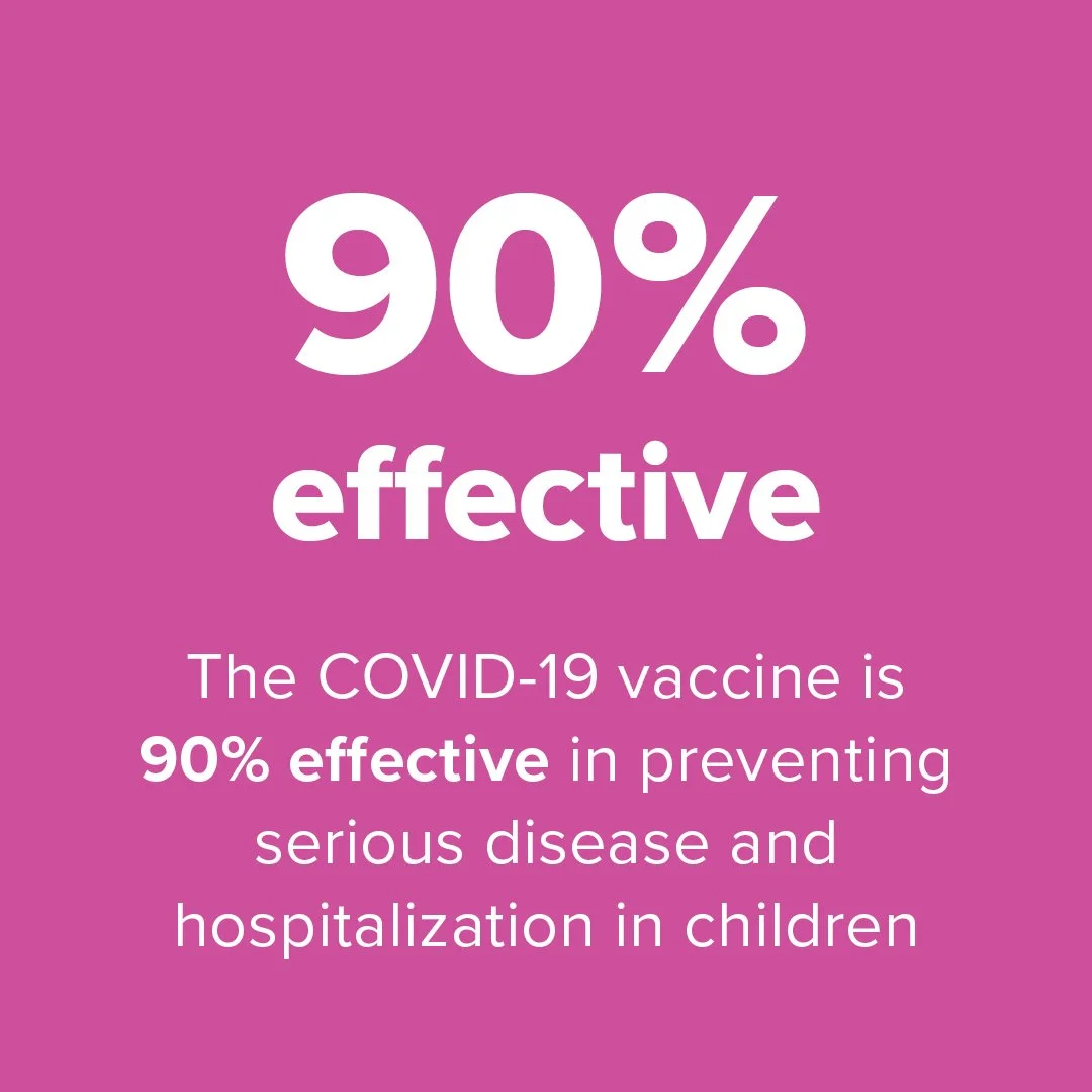The COVID-19 vaccine is 90% effective in preventing serious disease and hospitalization in children.