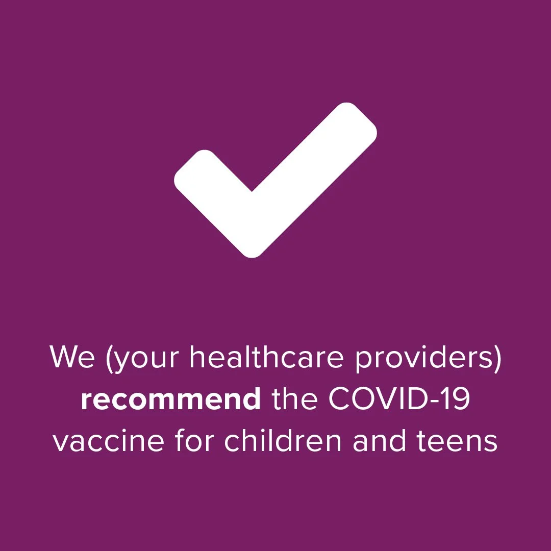 We (your healthcare providers) recommend the COVID-19 vaccine for children and teens.